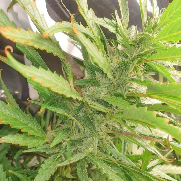 Листва пострадала достаточно сильно, и замена раствора уже никак не помогла. Несмотря на это, на 12-й неделе проблема не прогрессировала, шишки набухают и уже выглядят вполне зрелыми. Выработка смолы в полном порядке, трихомы в большинстве своём уже мутные. Запах стал еще насыщенней, перестал быть слишком резким, и пропала та дизельная вонь. Аромат фруктовый со сладко-терпким оттенком.