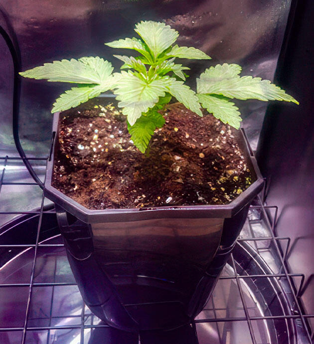 На второй неделе вегетации, когда корни заполнили стартовый объём, я произвел пересадку в более просторный горшок объёмом 2 литра. Это обеспечило растению дополнительное пространство для роста и снизило риск замедления развития из-за ограниченного корневого объема. Также я подключил автоматическую систему полива, чтобы поддерживать стабильное увлажнение субстрата без резких перепадов.