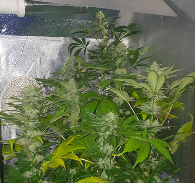 Судя по тому, что кустики начали активно тянуться, можно начинать отсчет цветения, как минимум предцвета. Эксперты из интернета оказались правы: при 12/12 растихам оказалось достаточно 4 недель, чтобы пройти вегу. Что касается самих кустов, то к концу недели их рост был плюс-минус 35 сантиметров, листвы много, расстояние между узлами длиннее, чем обычно у Grandaddy Purple. Продолжаю лить по 200-250 мл на куст, два раза в неделю с подкормкой Bio Grow 0,2 мл/л. Любопытно, что в гроубоксе стоит очень сильный запах, который еще на прошлой неделе был едва заметным. Такого поворота событий я не ожидал, особенно учитывая, что у меня нет угольного фильтра. Поставил вокруг бокса парочку поглотителей запаха и автоматический освежитель воздуха. В самом шкафу снизил влажность до 55 %.