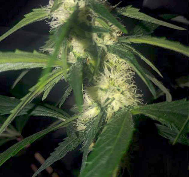 Начала желтеть листва, активнее всего лопухи. Шишки продолжают формироваться, в основном на центральных колах, меньше – на немногочисленных боковых ветвях. На бутончиках и сахарной листве появились проблески смолы. Аромат всё такой же сильный, но стал менее резким и вонючим, приобрел более сладкий и немного сырный оттенок.