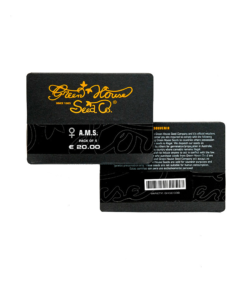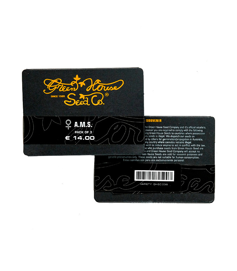 A.M.S. носит звание самого стойкого сорта. Растишка обладает генетической устойчивостью к атакам плесени и вредителей. Культура, кроме врожденного иммунитета, проявляет производительность 800 грамм с растения в ауте и 700 г/м² в индоре. Воздействие гибрида дарит возвышающий эффект.