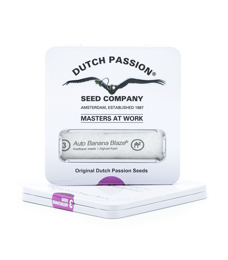 Dutch Passion поставили цель не просто создать автоцветущую версию Banana Blaze с коротким жизненным циклом, но и не потерять в силе воздействия и вкусоароматических характеристиках. Поэтому оригинал не стали просто скрещивать с рудералисом, а обратились к его «родителю» – оригинальному Afghan Kush. В качестве пары ему подобрали Auto Mazar, который передал гибриду ген автоцветения и помог сохранить уровень ТГК в 20%, а также добиться высокой урожайности у метрового растения. Семена конопли Auto Banana Blaze предлагаются в феминизированном виде поколения F1.