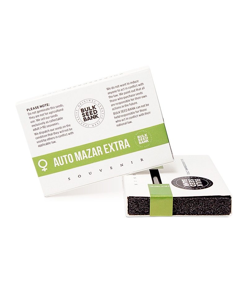 Сорт Auto Mazar Extra включают в себя высокую урожайность и мягкий вкус. Это 100% Индика с большими листьями, которая способна достигнуть 4м в высоту в открытом грунте. Сорт устойчив к вредителям и болезням, оказывает приятно-расслабляющий эффект.