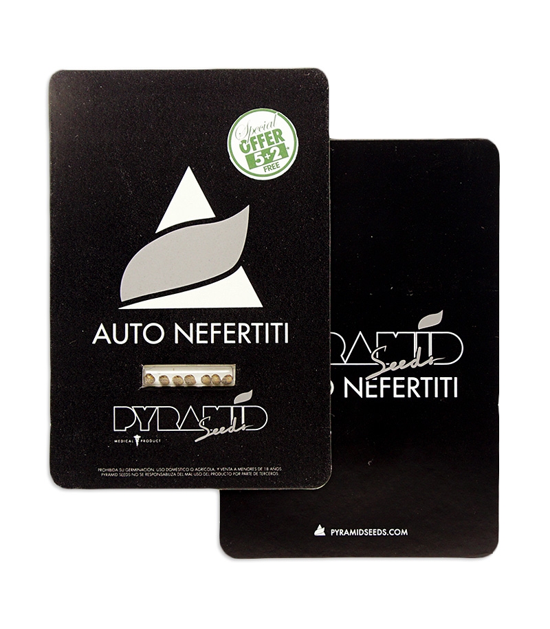 Auto Nefertiti – автоцветущая культура, предком которой являются Black Widow и White Widow. Способность к автоцветению появилась благодаря скрещиванию родителей с рудералисом. В селекции штамма принял участие L’Hort Dels Somnis. Pyramid Seeds смогли добиться уменьшения роста созревшего растишки.