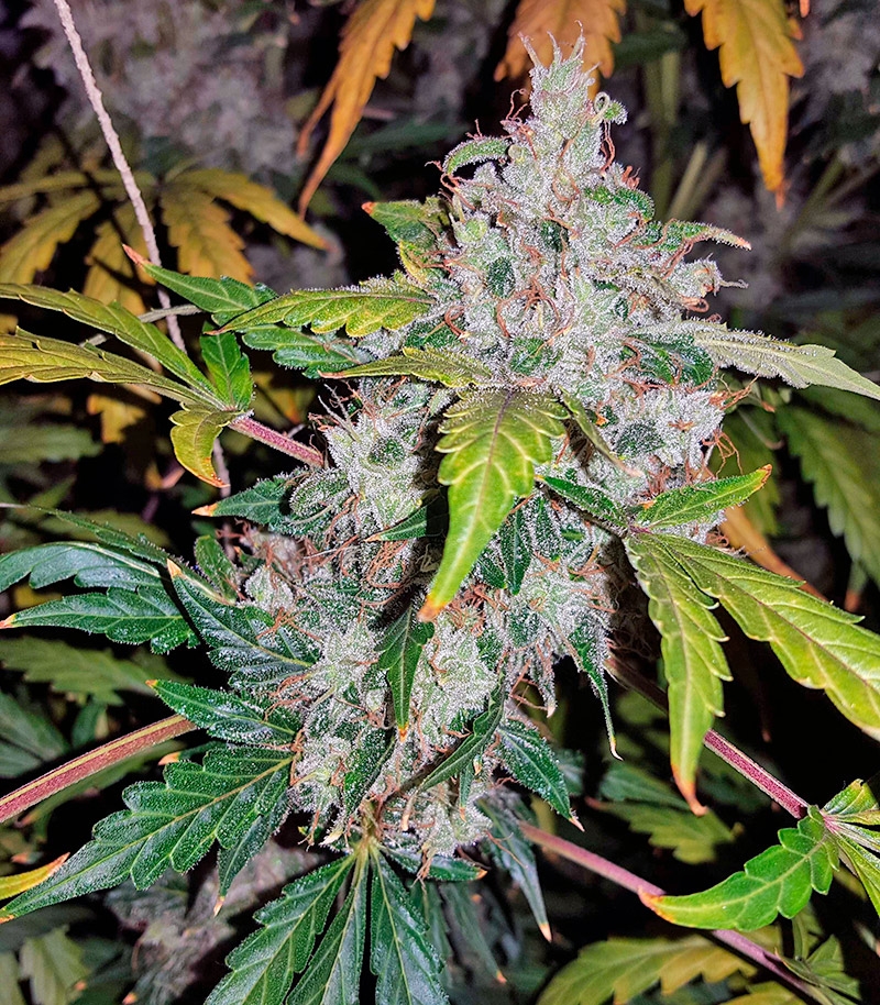 Путь от прорастания семени до сбора урожая автоцвет Auto White Widow проходит за 9 - 10 недель. Его средний показатель урожайности – от 70 г, но в благоприятных условиях можно получить до 200 г шишек с куста. В индоре к растению можно применять технику ScrOG и LST. В таком случае получится собрать от 450 г с 1 м2 рабочей площади. Ближе к харвесту соцветия плотно покрываются трихомами, а пестики приобретают оранжевый окрас. Максимальный рост кустов составляет 70 см в аутдоре, а в индоре 160 см.