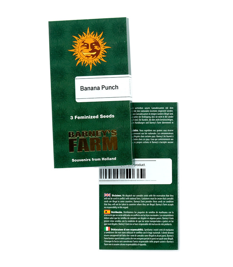 Banana Punch представляет собой яркую демонстрацию высочайшего уровня мастерства селекционеров сидбанка Barney’s Farm. Эти голландцы славятся высоким качеством своих сортов и уникальностью разработок. В случае с представленным гибридом селекционеры не подвели, презентовав гроверскому сообществу отличное растение. Они использовали сладкий сорт с банановым ароматом, который скрестили с невероятно красивым каннабисом Purple Punch. Их сочетание пополнило ассортимент Barney’s Farm новым индико-сативным гибридом (55/45).