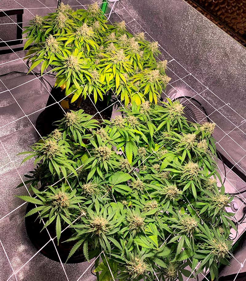При благоприятных условиях культивации растения способны производить колоссальное количество трихом. Смола начинает покрывать даже крупные листья, а перед самым сбором урожая кусты выглядят, будто припорошенные снегом. К слову, стадия цветения индичного гибрида пролетает довольно быстро. Уже спустя 6-8 недель после перехода на световой режим 12/12 можно приступать к рубке. С одного квадратного метра площади культивации эта дама приносит до 500 г готового продукта, содержание ТГК в котором достигает 18-27%. Урожайность в ауте также впечатляющая: до 0,5 килограмма шишек с одного растения средних размеров.