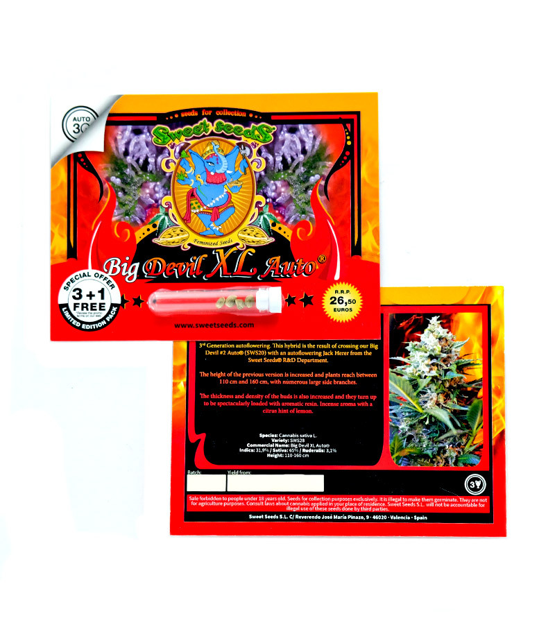 Сорт конопли Big Devil XL Auto от испанского сидбанка Sweet Seeds можно назвать великаном мира автоцветов. Он порадует гровера обильным урожаем вкусных и убойных шишек, принеся урожай за короткий промежуток времени.
