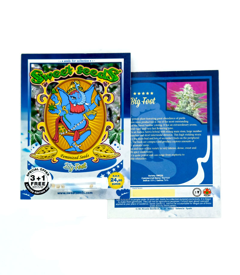 Это мощное гибридное растение с обилием трихом и невероятной выработкой смолы. Штамм считается одним из самых выдающихся сортов в каталоге компании Sweet Seeds. Big Foot одинаково хорош на грядке и в индоре. Культура доступна для выращивания, как опытным гроверам, так и начинающим.