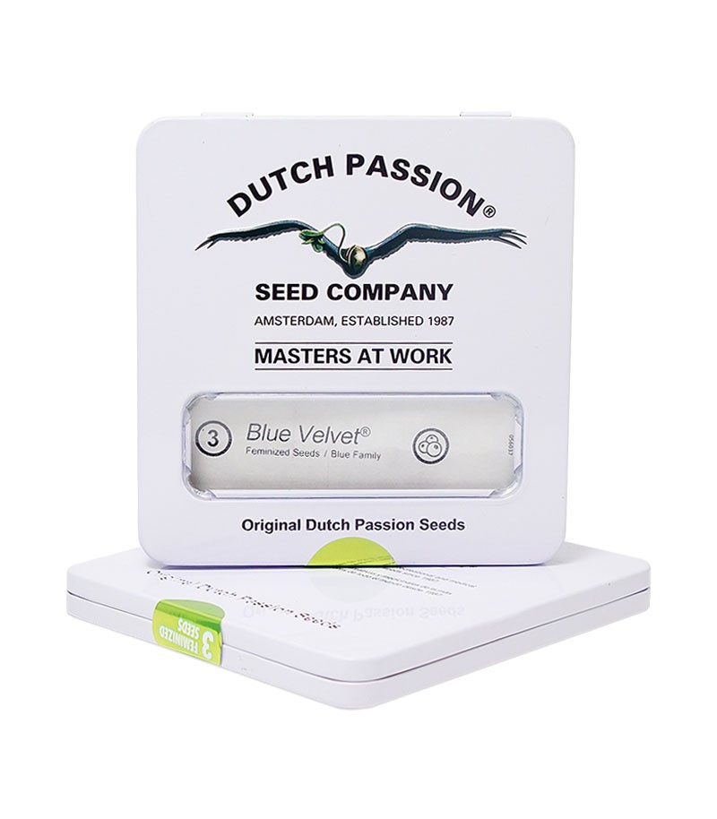 Dutch Passion несколько долгих лет трудилось над созданием Blue Velvet – сестрой знаменитого Blueberry. В переводе Blue Velvet значит – «Синий бархат». Фенотип получил такое имя не зря. Это на 50% Сатива и на столько же – Индика. Хотя гены Индики немного превосходят Сативу. Родителями этого сорта стали Purple Thai (гибрид Oaxaca Gold и Chocolate Thai) и мощная афганская Индика.