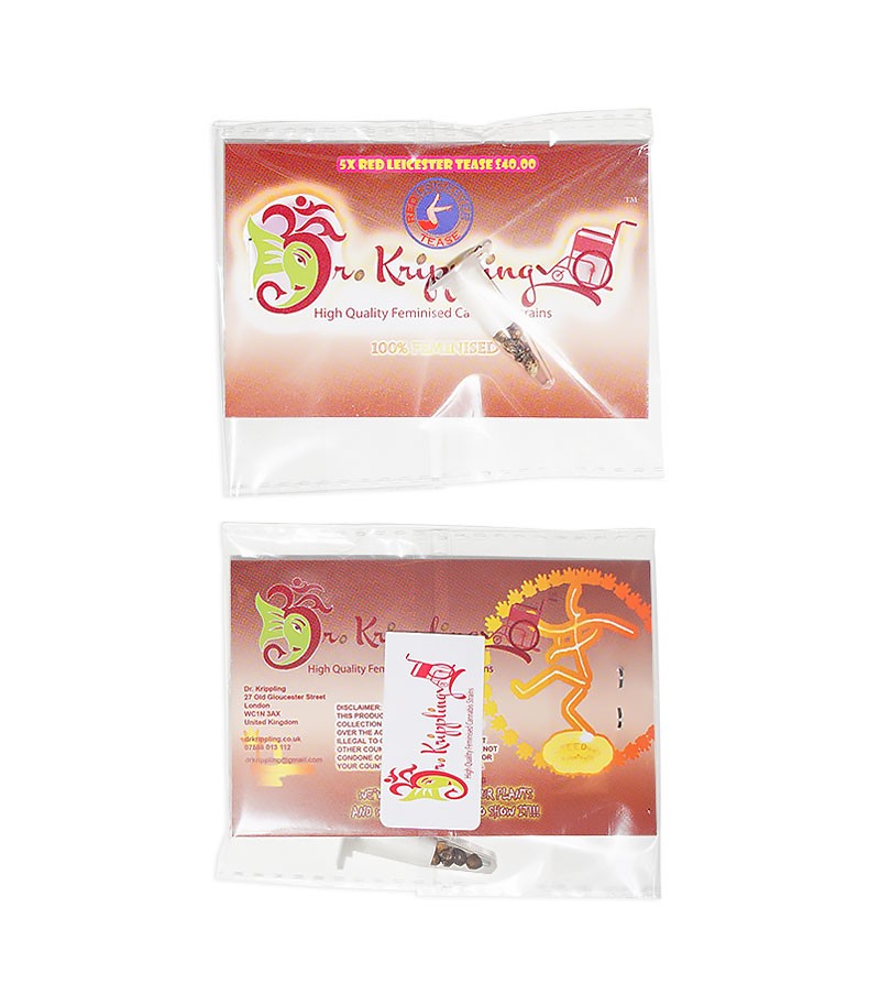 Сорт конопли Red Leicester Tease был получен селекционерами сидбанка Dr. Krippling путем скрещивания растений D.K. Won и Tease. Его готовый продукт созревает в течение 8 недель и содержит от 17 до 21% ТГК. Производительность одного куста в открытом грунте достигает 1100 грамм шишек.