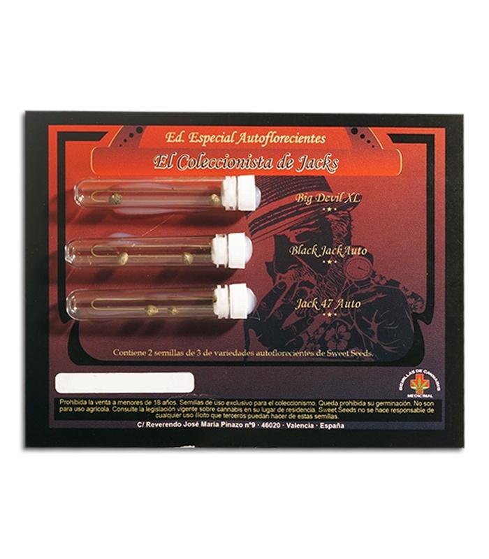 Коллекция семян конопли El Coleccionista de Jacks включает в себя три сорта: Black Jack Auto, Jack 47 Auto и Big Devil XL. Микс семян отлично подходит для гроверов, которые хотят собрать урожай из смолистых, плотных шишек, обеспечивающих энергозаряжающим эффектом и сладким вкусом!