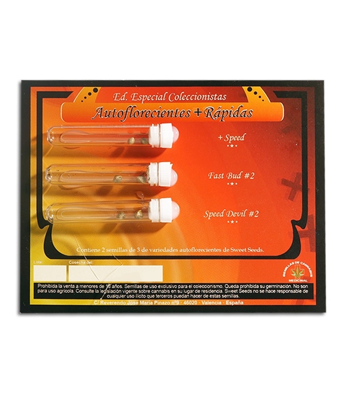 Коллекция семян коннабиса Autoflorecientes + Rapidas состоит из быстроцветущих сортов +Speed, Fast Bud #2, Speed Devil #2. Микс состоит невысоких растений с хорошим урожаем в виде смолистых шишек. Эти семена также объединяет продолжительный эффект, хотя у каждого гибрида он разный.
