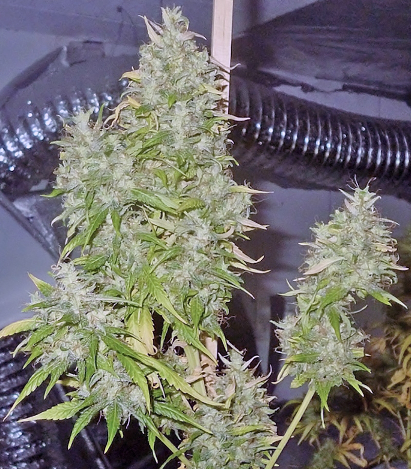 Уже через 7-8 недель собирается урожай. Центральная кола и ветви покрываются смолянистыми шишками, почки гибрида длинные и плотные. Растение при созревании покрывается сверкающими кристаллами. В результате гибрид каннабиса похож на елку в снегу. Для индора урожай составляет 600-800 г/м2, для аутдора – 75-200 г/м2. Этот вид марихуаны содержит в составе ТГК, варьирующий в пределах 17-19 %, и КБД – 0.8 %.