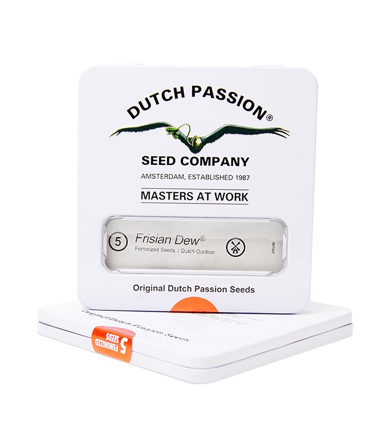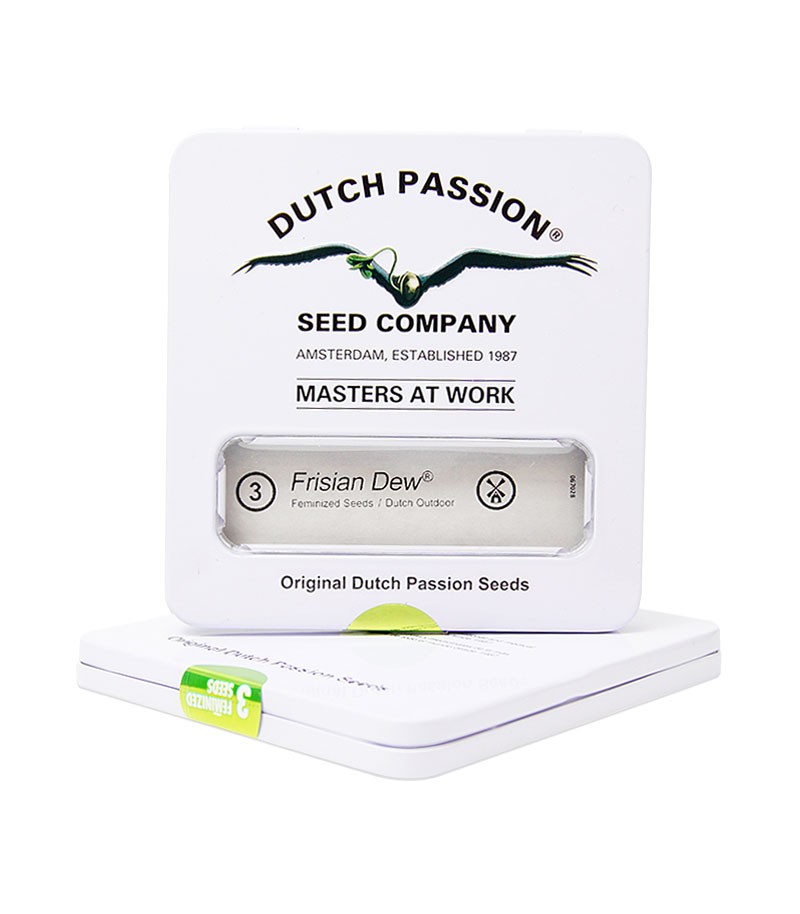 Frisian Dew высокое растение предпочитающее открытый грунт. В своей генетике носит по 50% сативы и индики. Этот сорт привлекателен на вид, плодороден, любит компост, а также устойчив к плесени и вредителям. Имеет приятный цитрусовый вкус с сосновыми нотками. Привлекает ароматом сосны и цитруса.