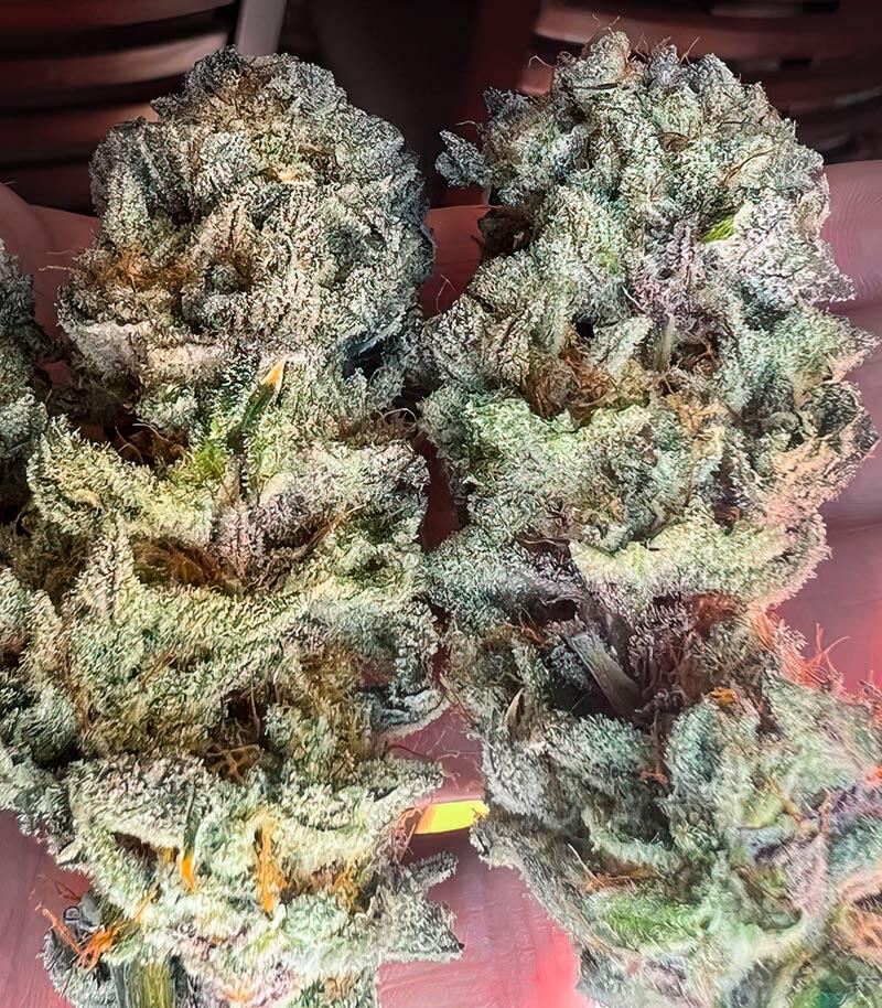 Если проводить выращивание в закрытом грунте, то рост кустов обычно остается в пределах 80 - 110 см, что делает сорт удобным для компактных гроубоксов и стелс-проектов. Он одинаково уверенно растет в почве, кокосе и гидропонных системах. В открытом грунте потенциал раскрывается еще шире. Кусты способны вытягиваться до 200 - 250 см, формируя крепкую раскидистую структуру с упругими ветвями, которые легко выдерживают внушительный вес собственных «плодов».