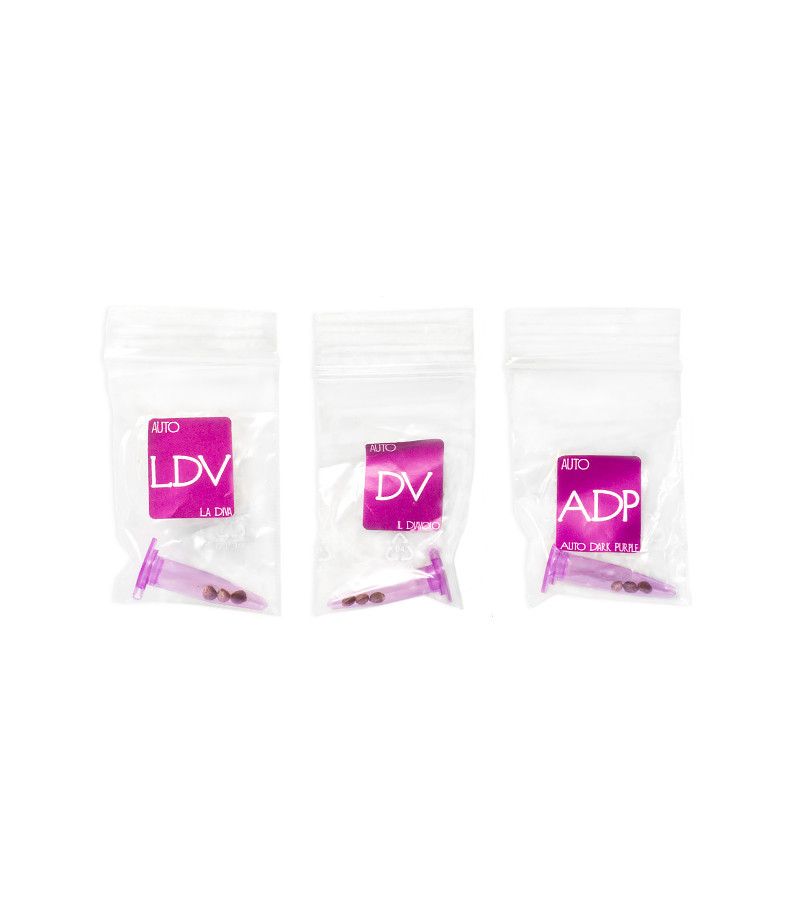Микс семян конопли Gourmet Collection – Automatic Strains #1 от испанского сидбанка Delicious Seeds, включающий в себя известные автоцветущие сорта La Diva, Il Diavolo, Auto Dark Purple. Все они характеризуются быстрым жизненным циклом, убойным воздействием и используются в терапевтических целях.
