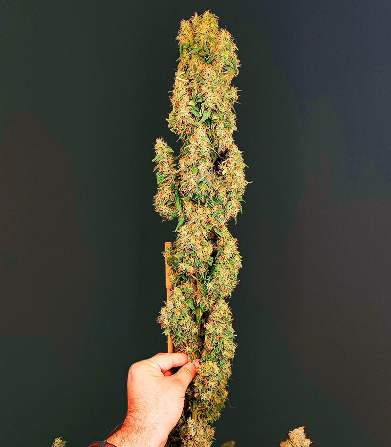 Объемные соцветия красуются не только на верхушке, но и в нижней части куста благодаря открытой структуре и хорошему проникновению света. В итоге к харвесту растения превращаются в красивые искристые шары с множеством увесистых бутонов по всей высоте. Выход с каждой такой красавицы может достигать 750-850 грамм, а при использовании стимуляторов цветения и удачных погодных условиях каждый куст принесет порядка 1,1 кг ароматных соцветий.