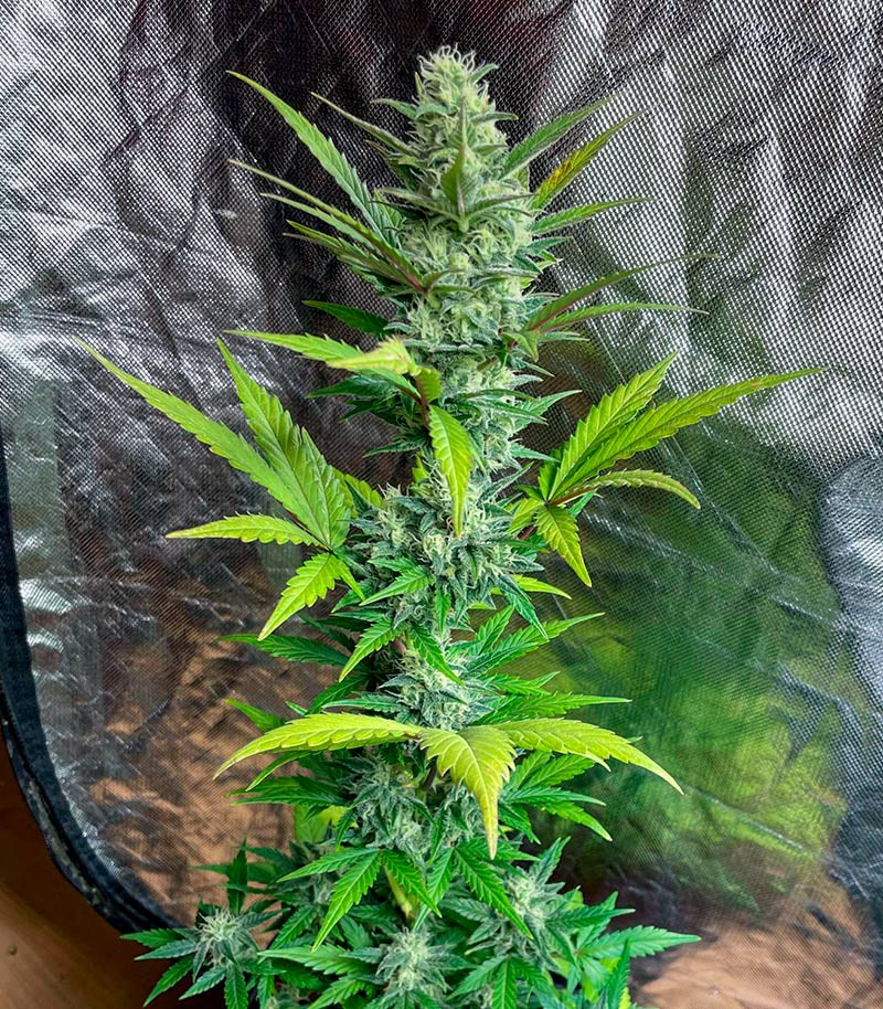 По меркам автоцветущей конопли Jet Fuel Mandarine XL Auto имеет весьма скромные размеры. Средняя высота кустов в помещении составляет 50-100 см, и только в аутдоре можно встретить довольно крупных особей ростом до 135 см. Растения имеют компактную и плотно сложенную структуру, в которой доминирует центральная кола, но второстепенные ветви отстают от нее лишь с небольшим отрывом. Волшебное преображение начинается практически сразу с приходом цветения. Зеленые кусты, словно снегом, укрывает толстым покровом трихом. Вокруг стоит аромат свежих цитрусов и влажной земли, что резко сказывается на уровне терпеливости гровера, заставляя его изнывать в ожидании завершения цикла.