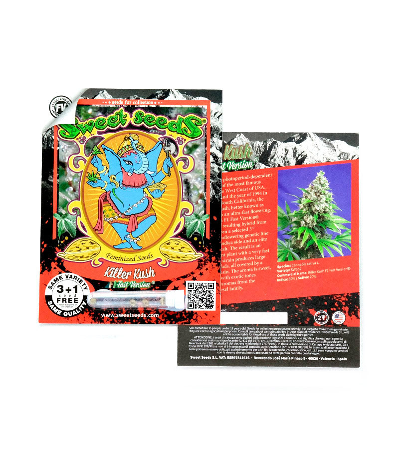 Killer Kush F1 Fast Version – это модификация известного OG Kush, который был скрещен с автоцветом 3ого поколения, что позволило получить гибрид, который отличается быстрым, сильным и энергичным ростом.