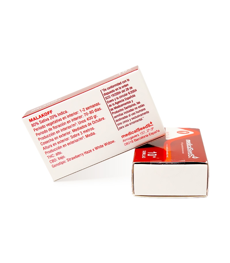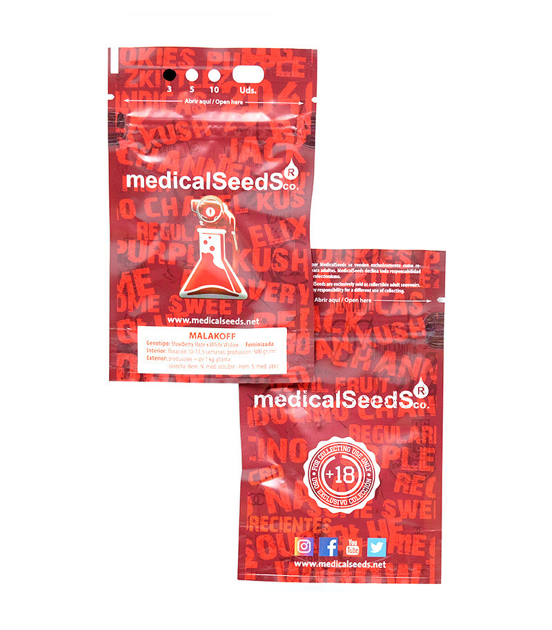 Это феминизированные фотопериодные семена, которые были выведены сидбанком Medical Seeds (Испания). Генетические родители культуры Мalakoff – Strawberry Haze и White Widow. В составе преобладает на 80% сатива, 20% занимает индика. Культура также устойчива к: