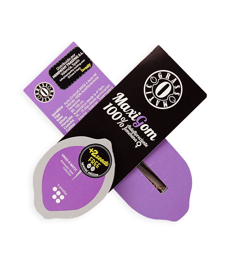 Original MAXI GOM – это результат скрещивания двух легендарных автоцветущих сортов компании Grass-O-Matic: Auto (Critical) MASS и Auto AK. Этот фенотип направлен на самых требовательных потребителей благодаря своим вкусовым качествам и высокой урожайности.