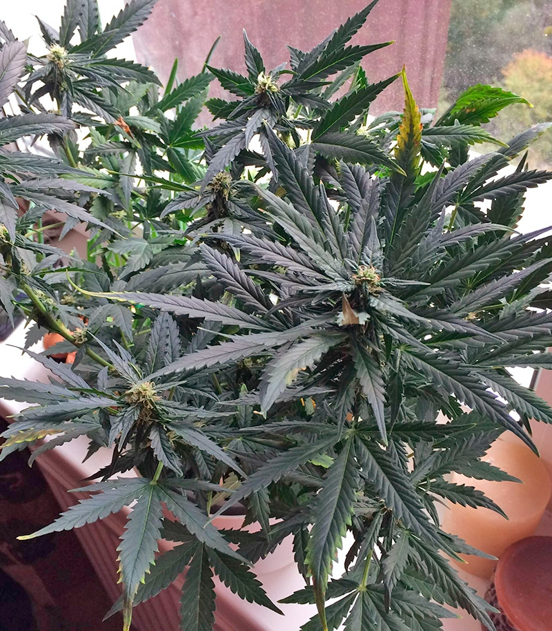 Всего за 75 дней с момента появления ростка можно собирать урожай. Это очень хороший показатель среди так называемых «супер автоцветов», которым нужно для полной готовности 100 и более дней. Период цветения начинается автоматически с 4-ой недели роста. Урожайность достигает 50-120 г сухого продукта с одного растения. Стебель этого фенотипа очень сильный, длинный высотой до 1,5 м, имеет много боковых ответвлений. На нем расположены большие смолистые почки, которые отлично работают на увеличение массы сухопродукта при сборе урожая, и мелкие листья. Уровень ТГК редко превышает 10%, а содержание КБД в растении – 0,1%.