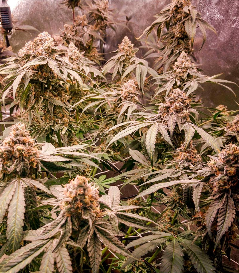 В закрытом грунте Mimosa Shot без проблем помещается в маленьких и невысоких гроубоксах. Средний рост взрослых кустов составляет 65-80 сантиметров. Структура растений достаточно плотная, поэтому рекомендуется использовать LST, чтобы сделать её более открытой. Таким образом воздух и свет будут лучше поступать ко всем частям кустов, что положительно скажется на развитии соцветий и конечном урожае. Период цветения под лампами длится 55-65 дней. За это время все ветви растений обильно покрываются плотными маслянистыми тяжелым соцветиями. С одного квадратного метра гроверы получают до 800 грамм.