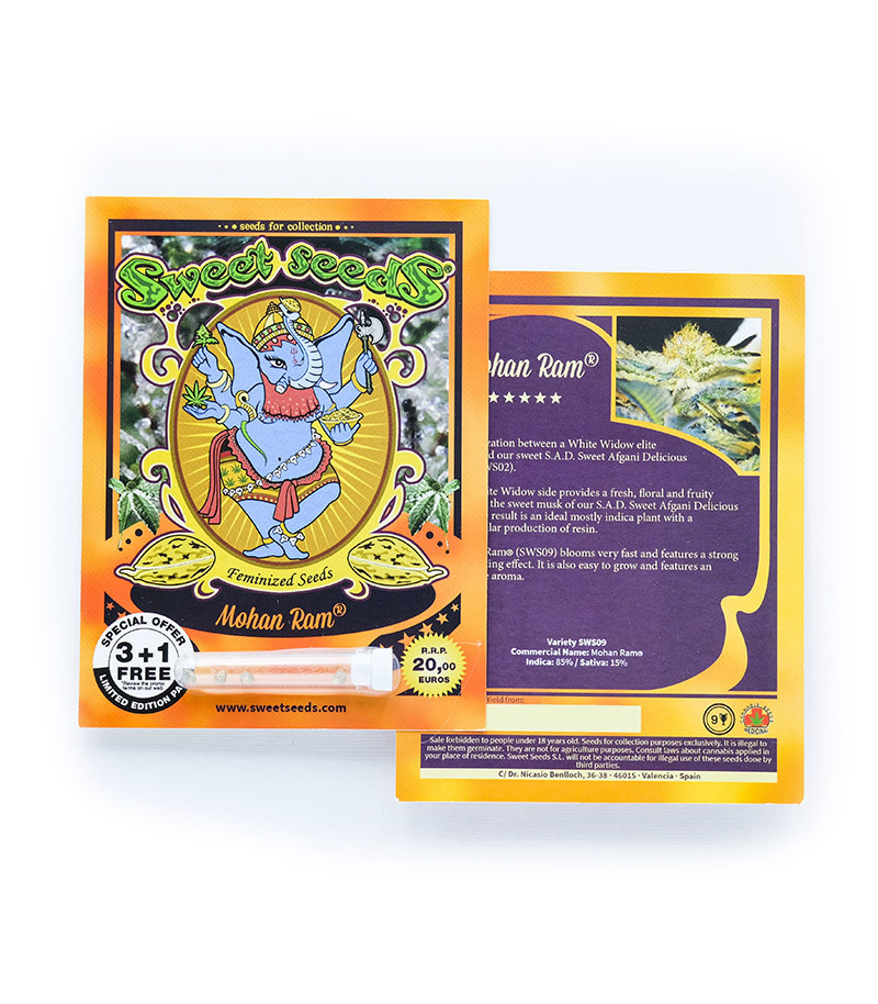 Mohan Ram – индично-сативный гибрид, результат скрещивания элитного клона Белой Вдовы и сладкого SWS02. Генетический коктейль интересных растений нашел свое отражение в довольно стабильном штамме. Генетика White Widow передалась фенотипу, что наградило его свежим цветочным запахом. Растению больше походит на Индику, чем на Сативу, как внешне, так и по своим характеристикам.