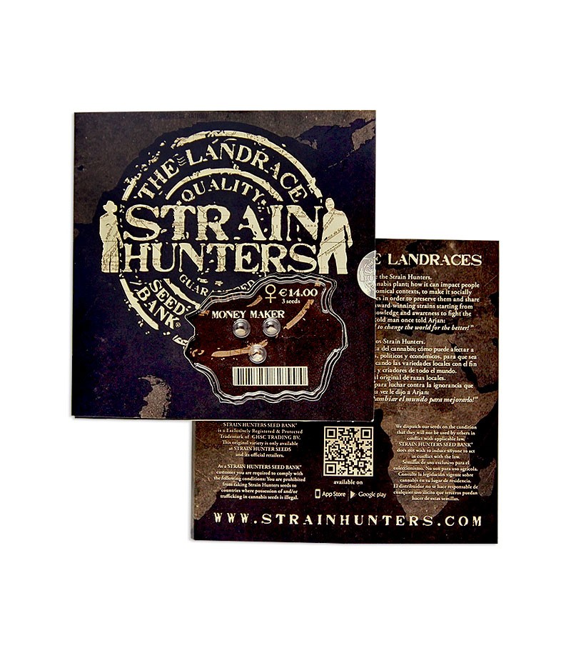 Money Maker вырастает небольшим кустиком с короткими междоузлиями (5-7см). Некоторые листья могут показать сативную генетику, а вот почки остаются типичными для индичных культур: полновесные, компактные, засмоленные. Чашечки бутонов довольно крупные, имеют неправильную форму. Растение может потребовать большого количества питательных веществ, поэтому гроверу стоит позаботиться, чтобы удобрения были хорошего качества. Растишка прошел адаптацию к аэропонным, гидропонным системам и кокосовому субстрату. Растение будет хорошим вариантом для начинающих коноплеводов и коммерческих гроверов. При работе с Money Maker в помещении, как правило, используются лампы 1000W HPS. На открытом грунте с одного куста можно собрать до 1,2 кг сухого продукта.