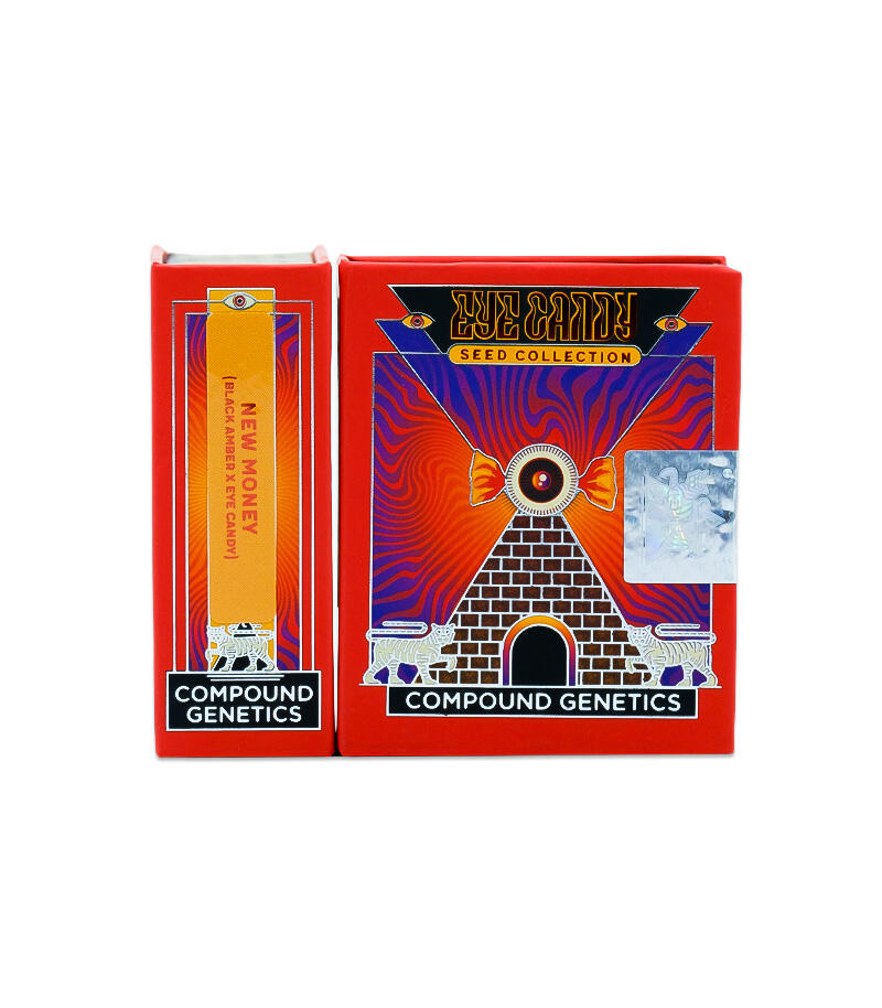Современный рынок полон хороших гибридов, но лишь единицы способны выделиться характером и «породой». Compound Genetics из числа тех, кто не следует трендам, а создает их. Команда известна своим вниманием к деталям и страстью к экспериментам. Так и гибрид New Money родился в результате их плодотворного сотрудничества с селекционерами из Fullmoon Genetics. За основу они взяли редкий фенотип Black Amber, мощную и ароматную комбинацию GMO x OZ Kush Bx2, известную своим темным цветом листьев и напористым дизельно-пряным запахом. К ней добавили Eye Candy, которая привнесла сладость, мягкость дыма и визуальную утонченность. В результате получилось растение, где старые традиции слились с современным стилем.