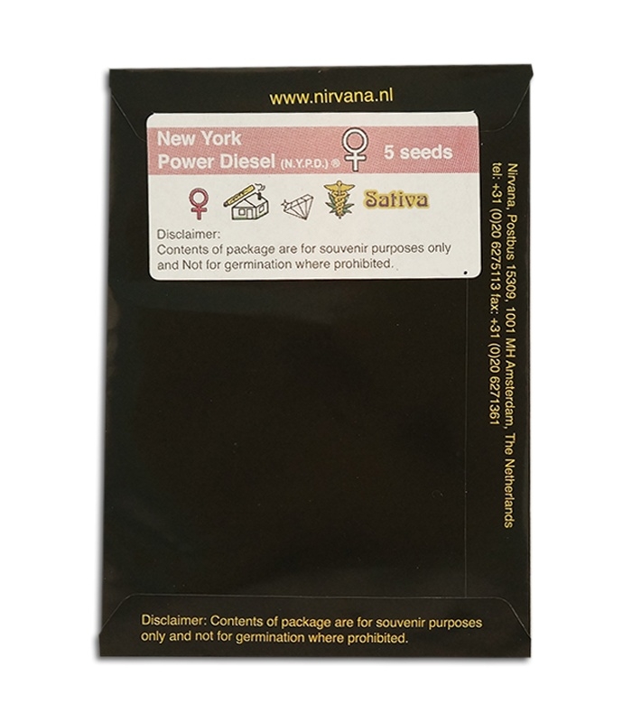 New York Power Diesel – гибридное растение поколения F1. Штамм был выведен от мексиканской сативной разновидности и Aurora Indica (собственный сорт Nirvana), который прошел этап дополнительной стабилизации специально для нового проекта. Тяжелое телесное воздействие Авроры сплетается с быстродействующим эффектом мексиканской сативы.