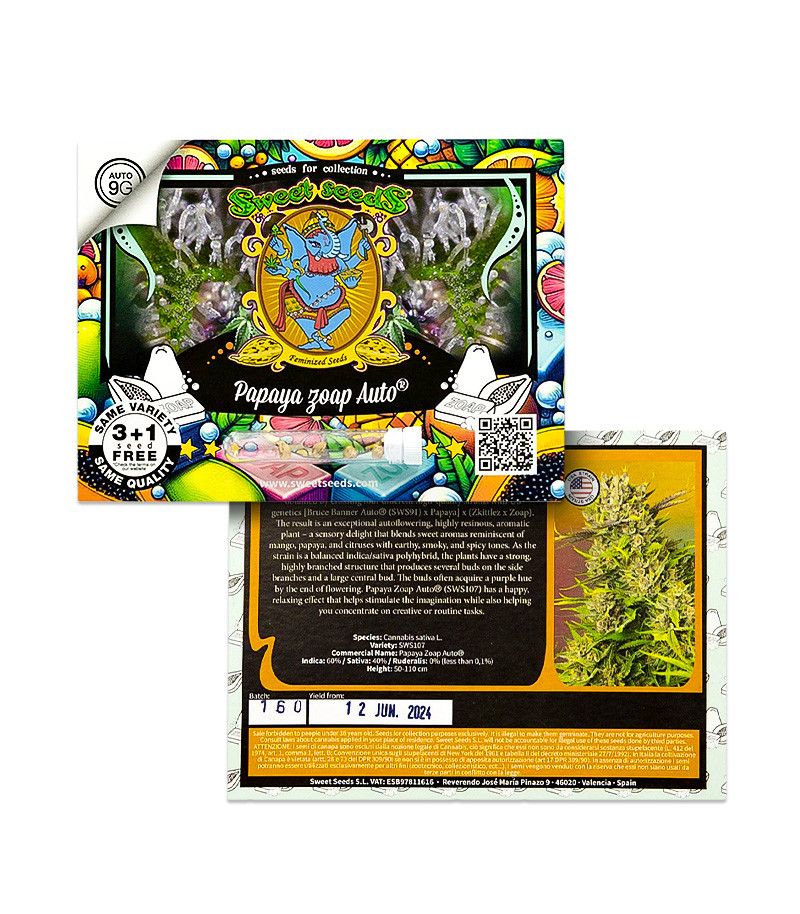 За последние несколько лет европейский рынок каннабиса заметно преобразился. Все чаще селекционеры Старого Света стали отказываться от проверенных местных «рецептур» и использовать в своей работе хиты калифорнийского побережья. Не стали исключением из данной тенденции и мастера компании Sweet Seeds. Их сорт Papaya Zoap Auto собрал в себе наследие сразу четырех величайших генетик родом из США: Bruce Banner, Papaya, Zkittlez и Zoap.