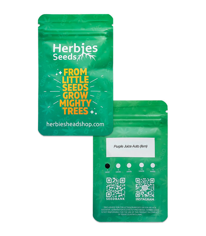 Фиолетовая красавица Purple Juice Auto может стать изысканным украшением любого сада. Но этот автоцвет от Herbies Seeds обладает не только привлекательным внешним видом. Хорошая урожайность, быстрое созревание, мощный эффект и приятный вкус – у этой девочки есть всё, что ищет гровер в новом сорте.