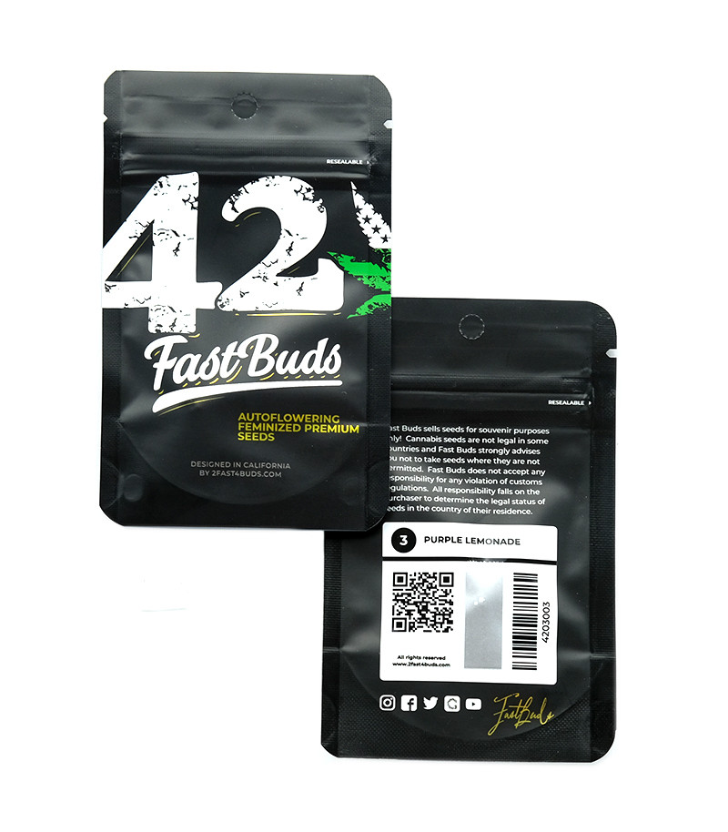 Сорт конопли Purple Lemonade будто бы сам облит сладкой газировкой – он настолько липкий, что если схватиться за шишку, то так и останешься стоять у горшка. Хотя точно такой же эффект оказывает и его красота. Растишка настолько прекрасна, что хочется смотреть на нее годами не отрывая взгляда. Что ни говори – Fast Buds знают толк в высоком искусстве. Это чудо появилось на свет после тщательнейшего отбора лучших представителей цитрусовой и фиолетовой генетик Cali и скрещивания их с автоцветущими наработками самого сидбанка.