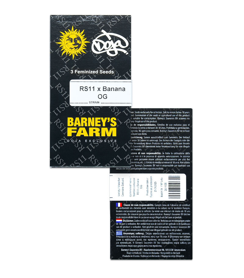 Каннабис RS11 X Banana OG появился на свет в результате плотного сотрудничества голландских мастеров селекции Barney's Farm и калифорнийских хранителей премиальной генетики DOJA Exclusive. Для скрещивания они выбрали два популярных в американских диспансерах сорта. Rainbow Sherbert #11 и Banana OG – это выдающиеся гибриды с хорошим запасом прочности, высоким потенциалом урожайности и смолистостью премиального уровня. Но сочетание их качеств – это что-то совершенно новое в мире каннабиса.
