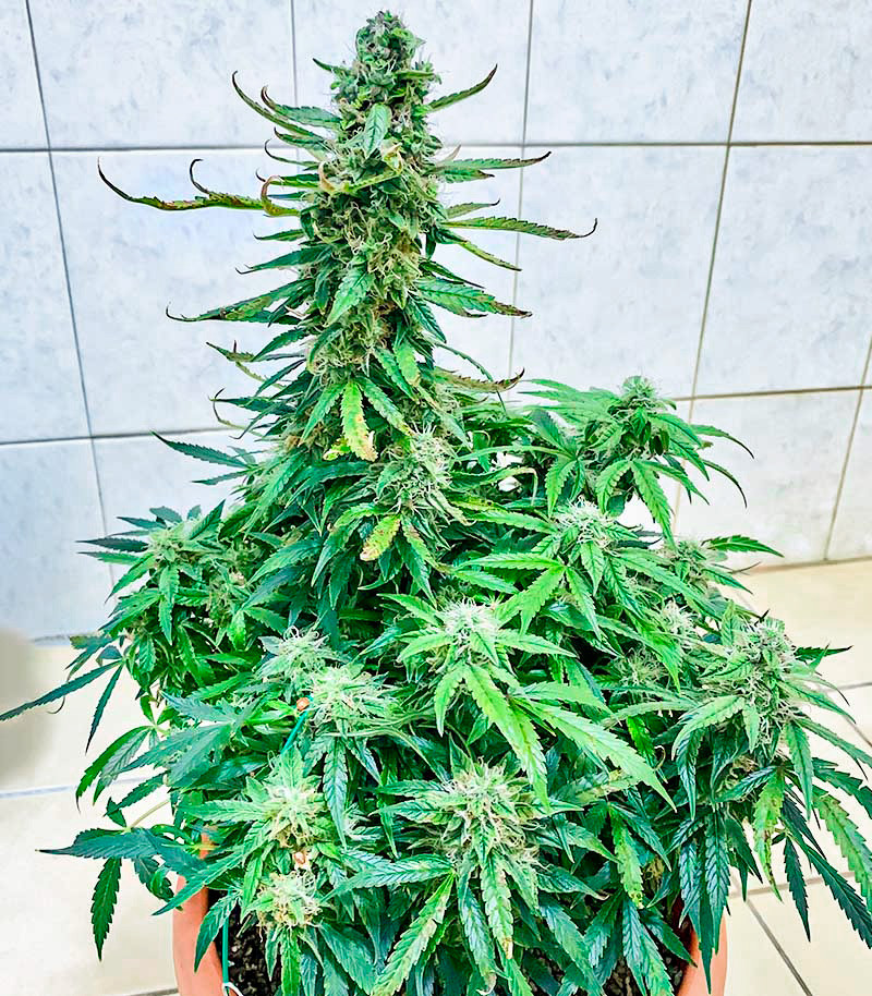 Сорт конопли Runtz Auto даже по своим габаритам напоминает фотопериодную версию. В индоре его высота ограничивается отметкой в 80-100 см, а в ауте – 110-140 см. По меркам автоцвета растение является настоящим великаном. Лучше подобрать оранжерею попросторнее. Но такие сложности с лихвой компенсируются урожайностью. В закрытом грунте растение способно принести до 600 г/м2, а в открытом – до 300 г/куст. На полное созревание кусту требуется всего 65-70 дней.