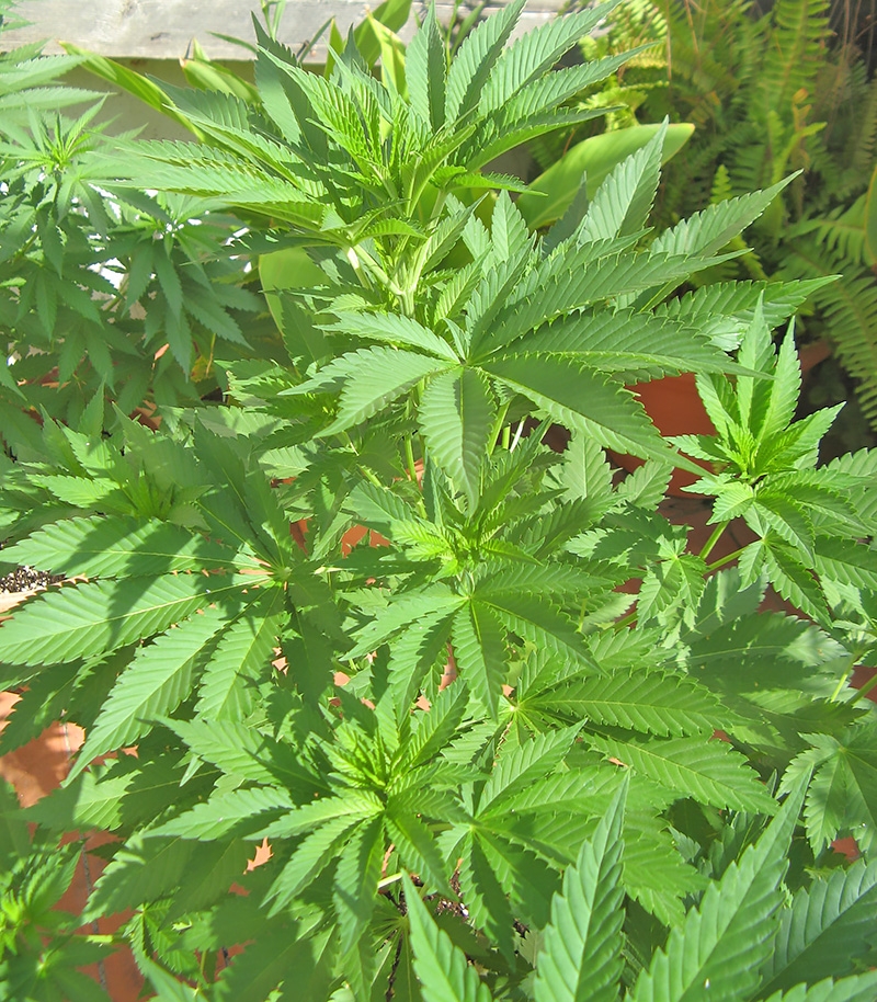 Яркая зеленая листва со смолистыми трихомами и рыжими волосинками источает сильный аромат. Размер получился чуть выше, чем у предшественников, так же стоит следить за боковой листвой и вовремя ее обрезать, иначе куст зарастет и не покажет хорошего результата при сборе урожая.