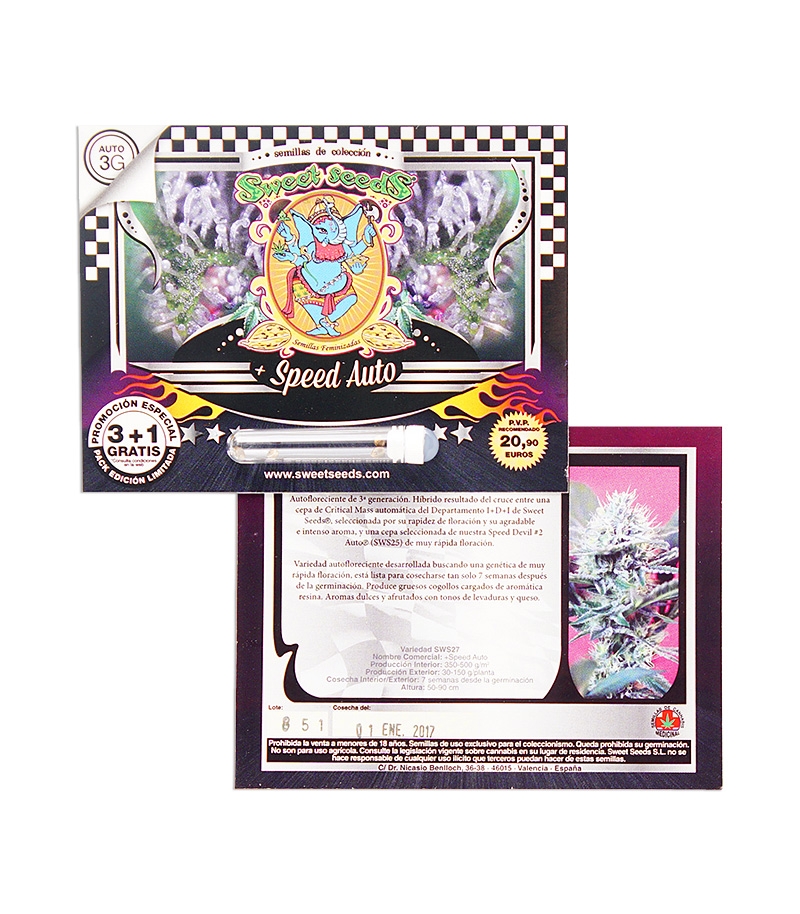 Speed Devil Auto – первый представитель семейства «дьявольских» штаммов. Основной особенностью сорта считается молниеносная скорость цветения. В то время, как другие сорта за 8 недель совершают только одну стадию – цветение, Speed Devil Auto успевает пройти весь жизненный цикл и дать удивительный урожай.