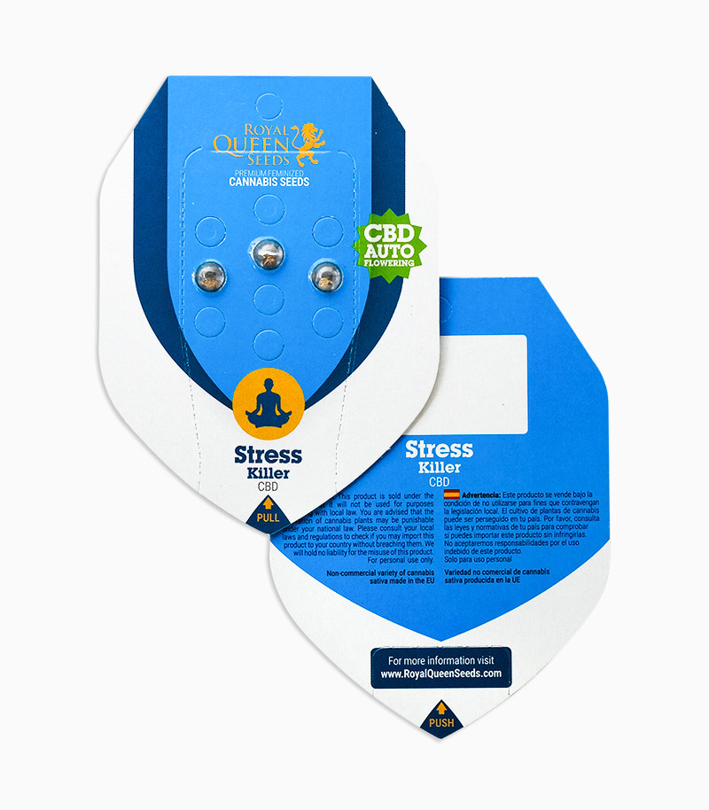 Сатива-доминантный сорт конопли Stress Killer Automatic CBD проходит жизененный путь за 11-12 недель. Он приносит 110-160 г шишек в аутдоре, уровень содержания ТГК которых достигает 11%. Воздействие сорта сочетает в себе чистый сативный хай и ментальный эффект индики. Используется в медицине.