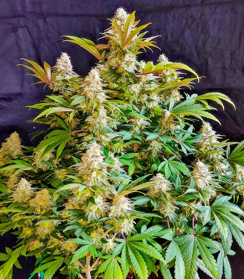 Кусты, выращенные из семян конопли Trainwreck Fast Version, обладают на удивление компактными размерами. Если не затягивать с вегетационным периодом, то их высота чаще всего ограничивается 120-130 см, хотя сама крона состоит из множества длинных раскидистых ветвей. Для поддержания кол могут потребоваться опоры или подвязка, чтобы они не обломились под тяжестью соцветий, вес которых может доходить до 600 граммов на одном аутдорном растении или 450 граммов с квадрата индорной площади.
