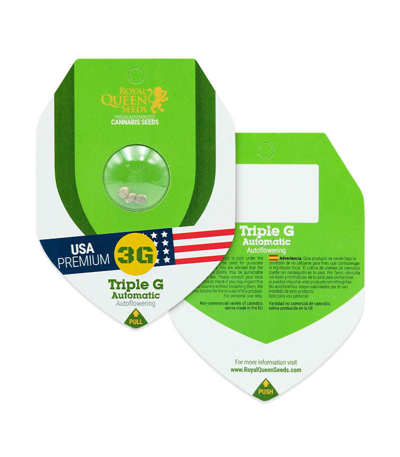 Сорт конопли Triple G Auto – это автоцветущий каннабис, разработанный опытными селекционерами компании Royal Queen Seeds. Вдохновением послужил гибридный сорт Triple G (Royal Gorilla x Green Gelato), который был скрещен с высокоурожайным и крепким автоцветущим Big Skunk Auto. Целью бридеров было создание гибрида с таким же ярким вкусом и мощным эффектом, но с более коротким циклом созревания, чем у фотопериодного оригинала. Результатом стал автоцветущий гибрид, состоящий на 80 % из индики, 15 % сативы и 5 % рудералиса.