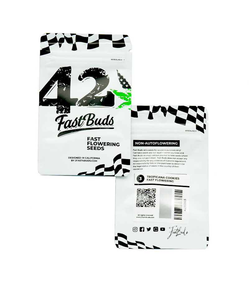 Перед вами достойный продолжатель легендарной генетики «Печенья» – сорт конопли Tropicana Cookies FF. Главная его особенность – ультрабыстрое цветение. Он входит в новую коллекцию сидбанка FastBuds, в которой собраны фотопериодные растения. Это коллекция Fast Flowering, или FF. А ведь все помнят, что до этого у них были только автоцветы?