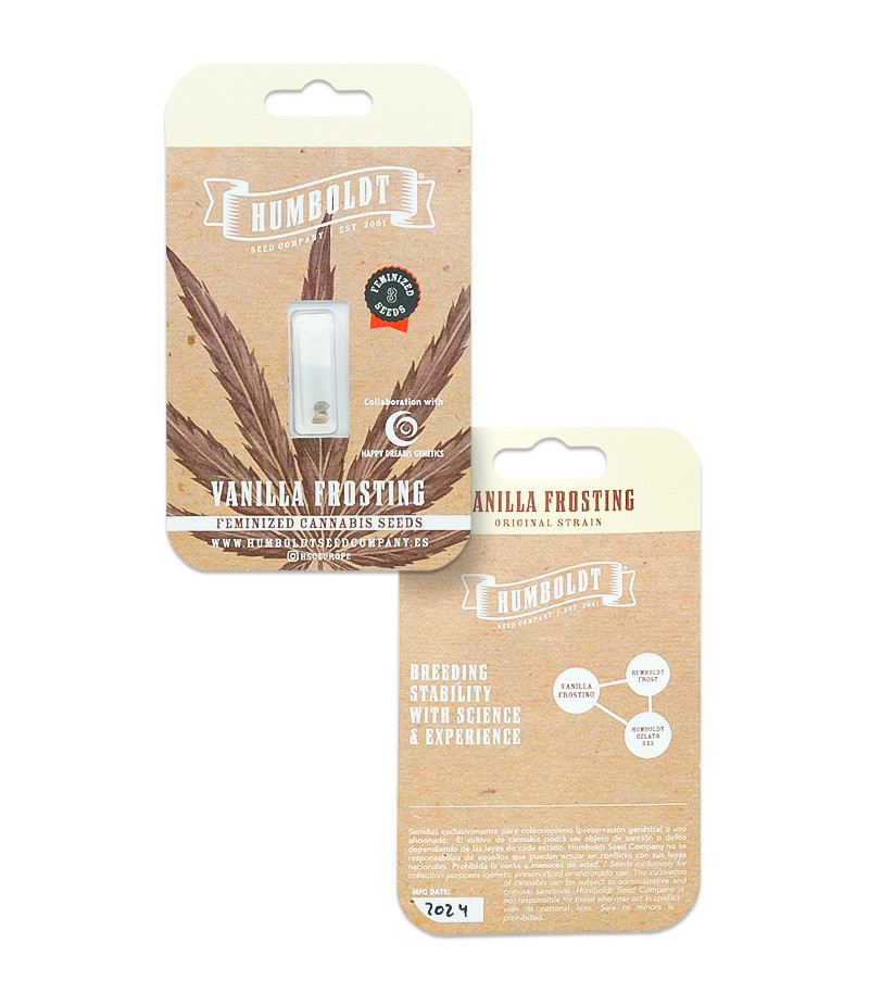Селекционеры компании постоянно пополняют свой ассортимент многотысячной библиотеки родительских растений интересными гибридами со стабильной генетикой и запоминающимися вкусоароматическими данными. Vanilla Frosting – это яркий тому пример. Экстравагантная смесь морозного сорта Humboldt Frost и аппетитной малышки Humboldt Gelato Bx3 заставит утопать в собственной слюне любого фаната-сладкоежку. Причем для получения щедрого урожая не потребуется много усилий.