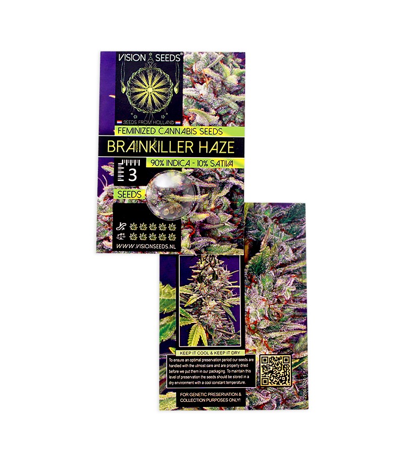 Сорт конопли Brainkiller Haze от Vision Seeds – это феминизированный сорт с почти чистой родословной, с преобладанием сативы в генетической формуле семян. Настоящий Убийца мозга, который не щадит скуку и депрессию, убивает стресс и блокирует болевой синдром.