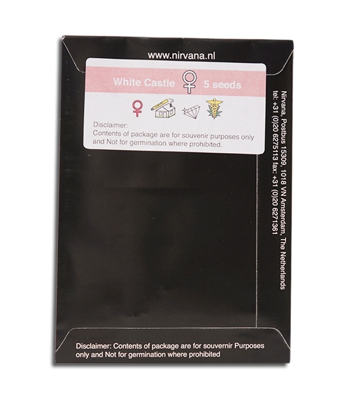 White Castle – превосходный гибрид серии F1, полученный от двух отличных штаммов. Обладатели нанрад разных категорий, абсолютные победители всевозможных конкурсов и кубков – вот, кто родители фенотипа. Имена этих великолепных сортов – Ice и White Widow (оба сорта являются собственностью Nirvana Seeds). Скрещивание Белой Вдовы и Indica Crystal Extreme привело к появлению сорта с восхитительными характеристиками: